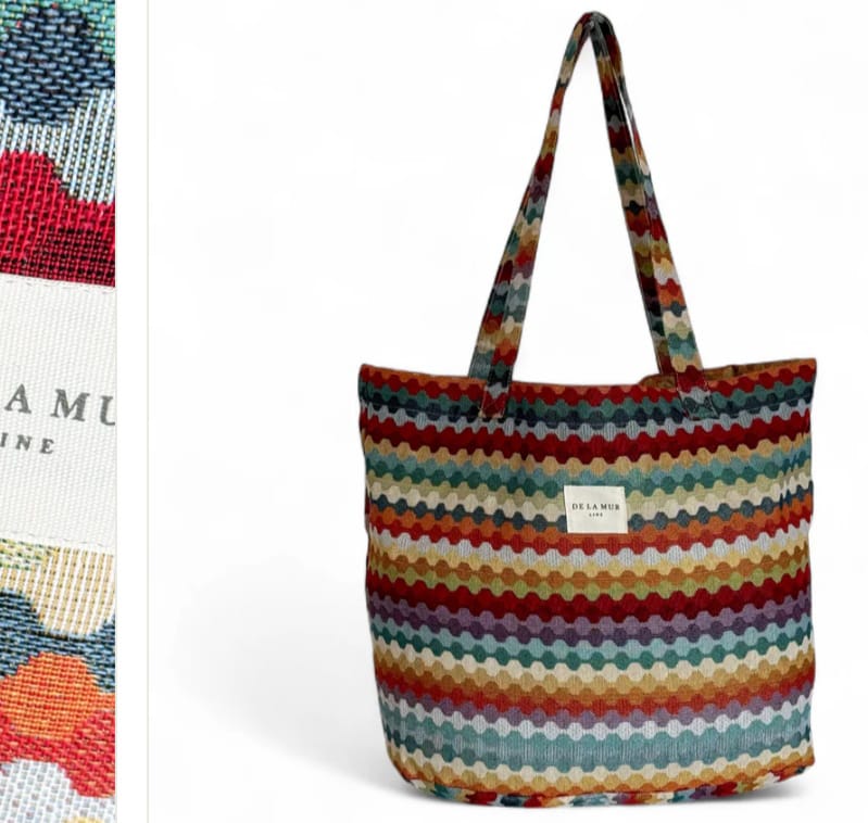 Bolsa shopper grande con asas para llevar al hombro. Para su correcto mantenimiento se aconseja lavarlo en frío y no utilizar secadora.