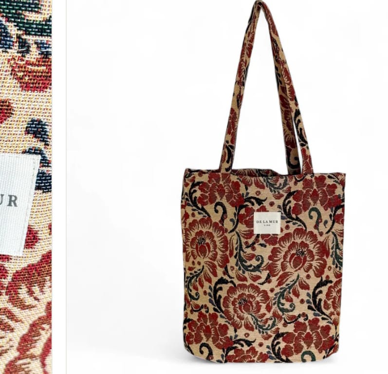 Bolsito de tela estampado estilo «Tote bag». Para su correcto mantenimiento se aconseja lavarlo en frío y no utilizar secadora. Ancho 36cm x 39 cm de alto. Confeccionado en España con tejidos nacionales, en su mayoría compuesta por algodón. Varios modelos identificados por nombre.