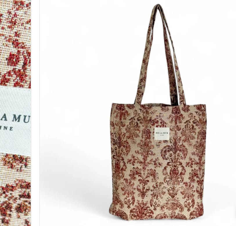 Bolsito de tela estampado estilo «Tote bag». Para su correcto mantenimiento se aconseja lavarlo en frío y no utilizar secadora. Ancho 36cm x 39 cm de alto. Confeccionado en España con tejidos nacionales, en su mayoría compuesta por algodón. Varios modelos identificados por nombre.
