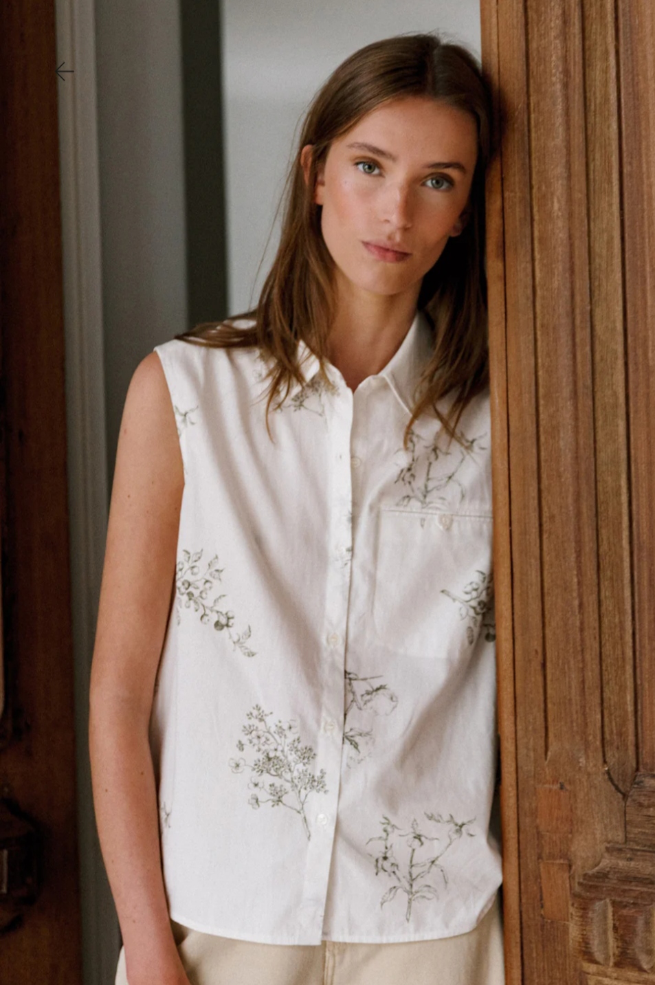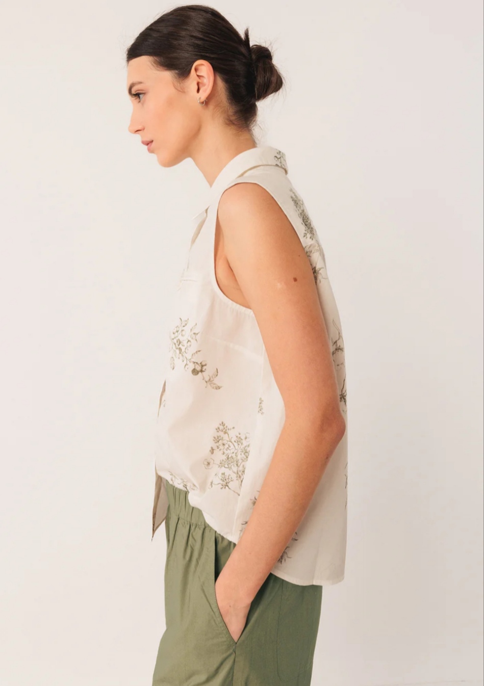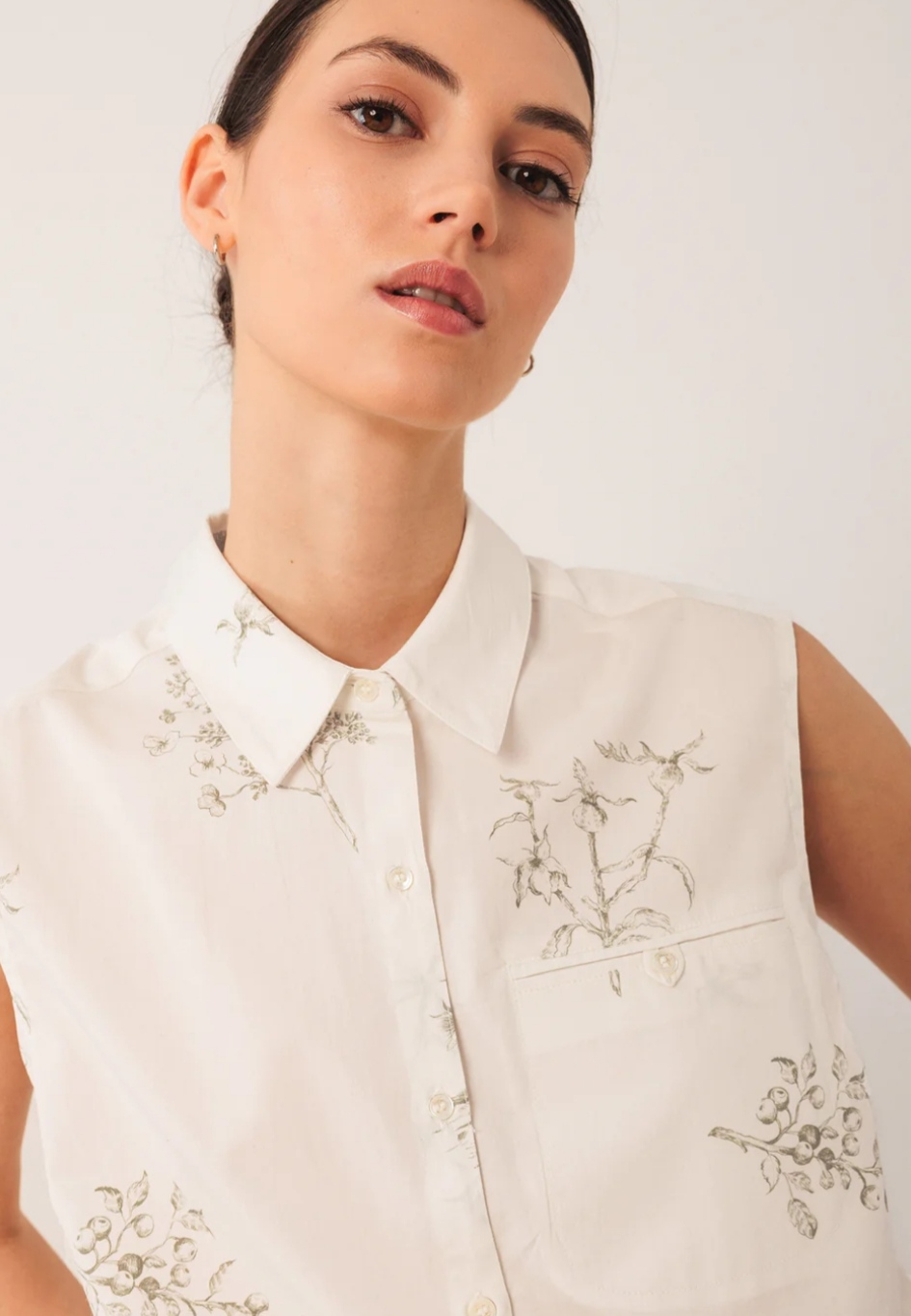 Esta camisa en popelín de algodón tiene hombro encajado y no lleva manga. Su fit regular y sobretodo el estampado digital con motivo floral le dará un toque especial a tus looks.