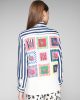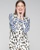 Camisa fluida con animal print en la parte delantera, mangas de rayas azules y blancas y espalda con cuadros de flores. Cierre frontal con botones camiseros. Manga larga acabada en puño. Pantalón a conjunto disponible. La modelo mide 1,75 y lleva la talla 38. Marca Vilagallo. Hecho en España.