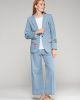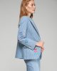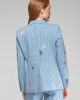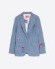 Blazer de tejido denim elástico con rayas azules y blancas.Bordados de aperitivos diseñados por Vilagallo por el cuerpoo y mangas. Cierre frontal con botón de estrella metálico. Bolsillos con solapa. Forro estampado exclusivo Vilagallo. Pantalón a conjunto disponible. La modelo mide 1,74 y lleva la talla 38.Marca Vilagallo. Hecho en España.