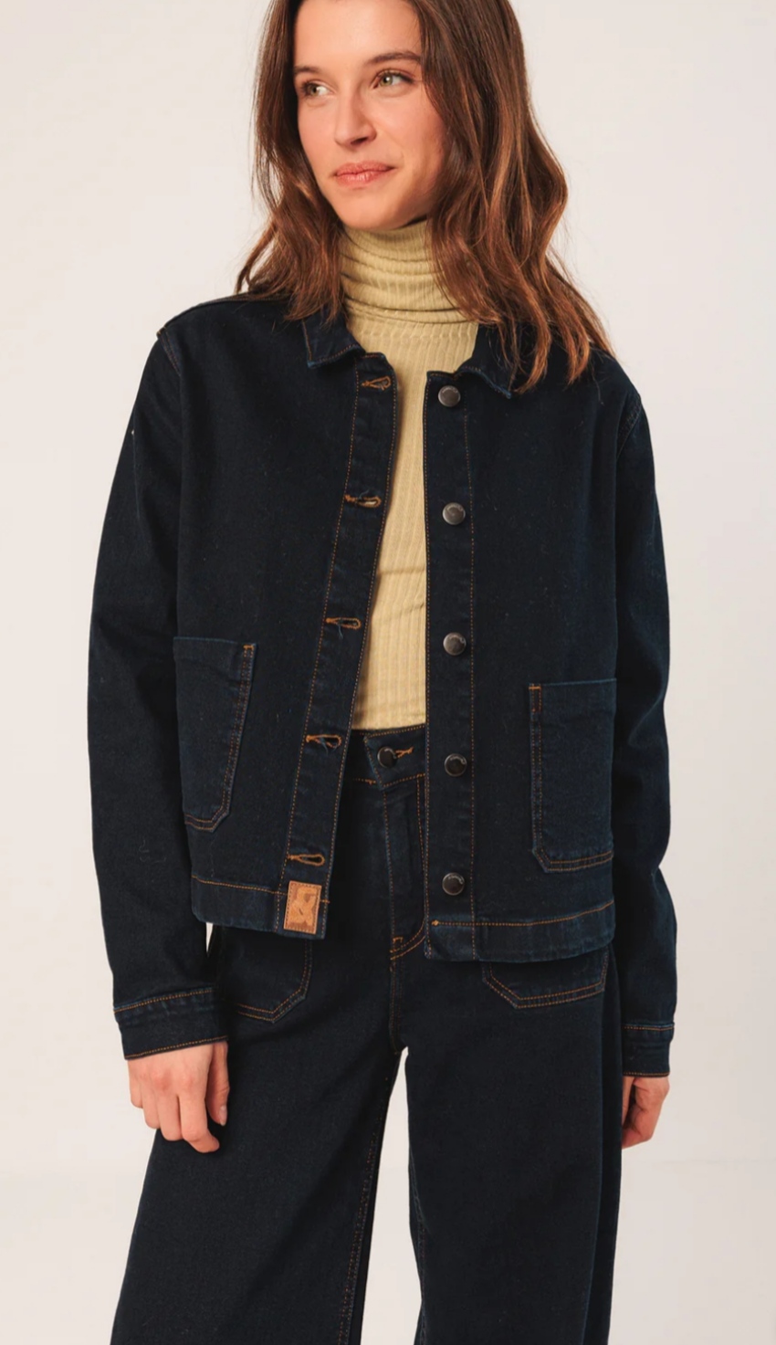 Cazadora vaquera que podrás combinar con todos tus looks. Tiene cierre de botones metalizados y bolsillos delanteros de parche. Confeccionado en tejido de algodón con un poco de elastano para que resulte más cómodo. Marca Indi&Cold. Hecha en España.