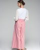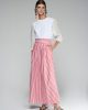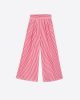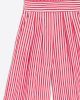 Pantalón palazzo de rayas rojas y blancas. Cinturilla ancha y con goma en la parte trasera. 100% algodón. Camisa a conjunto disponible. La modelo mide 1,80 y lleva la talla 38. Marca Vilagallo. Diseñado y fabricado en España.