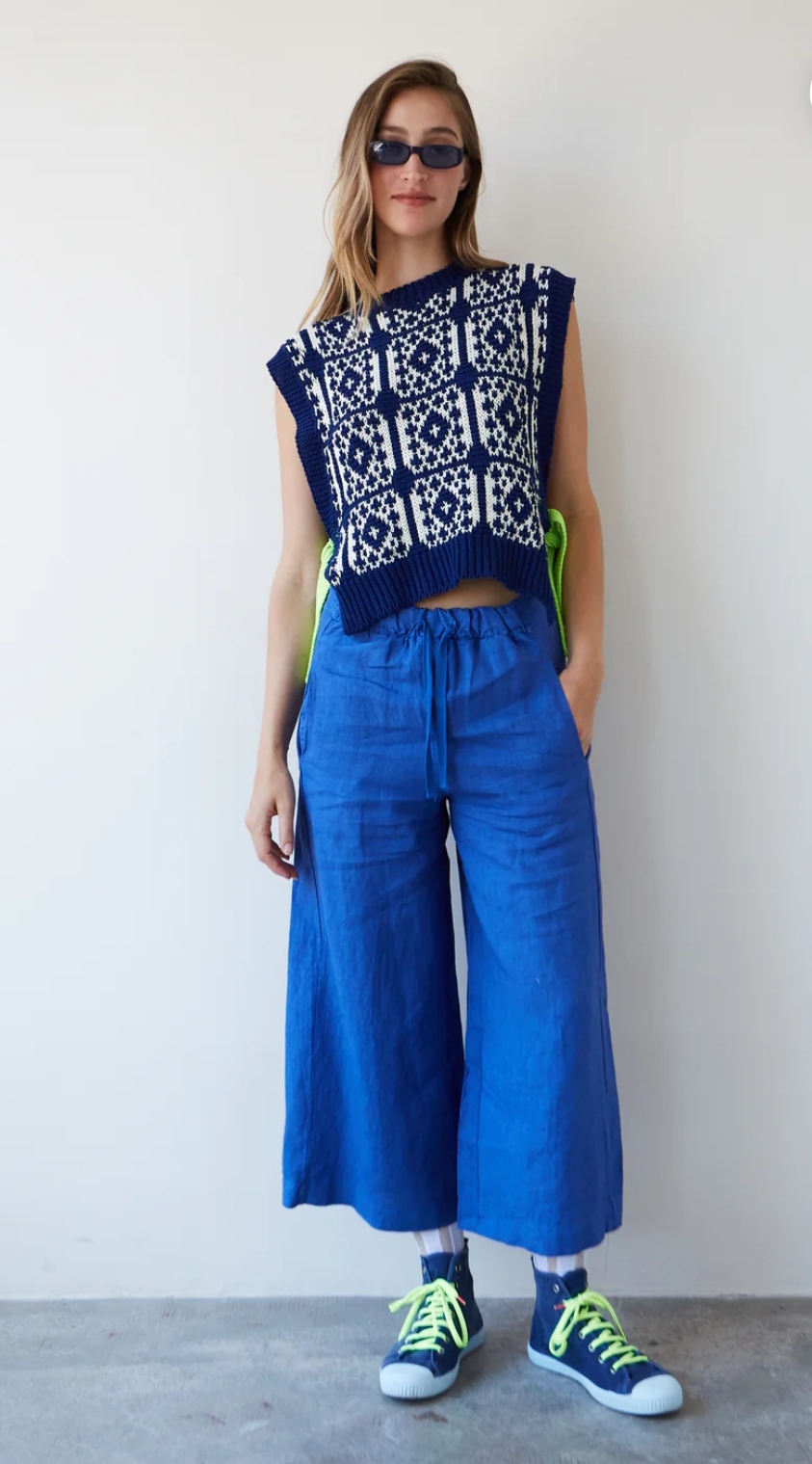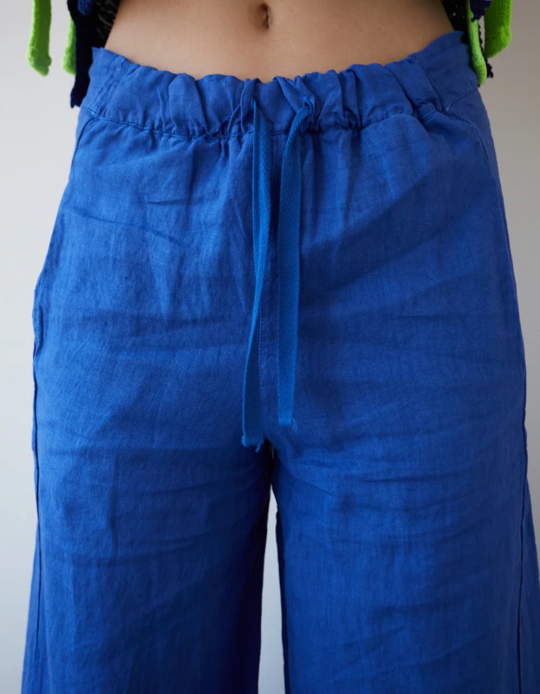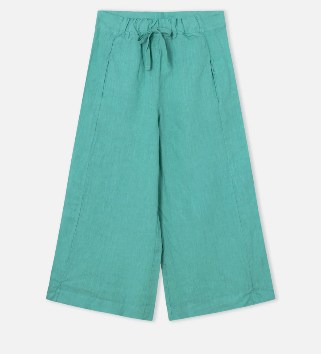 Pantalones anchos con medida crop. Cordón en la cintura. Marca Dr. Bloom. Diseñado y confeccionado en Barcelona.