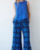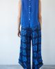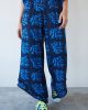Pantalones anchos con medida crop con original estampado. Bajo con corte asimétrico. Cordón en la cintura. Marca Dr. Bloom. Diseñado y confeccionado en Barcelona.